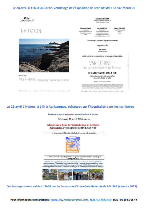 et mercredi 29 avril à Hyères, Agricampus, MALTAE invite à 14h, avant son Assemblée Générale, à des échanges sur le thème de « l’hospitalité dans les territoires » en présentant les carnets d’hospitalité du collectif marseillais